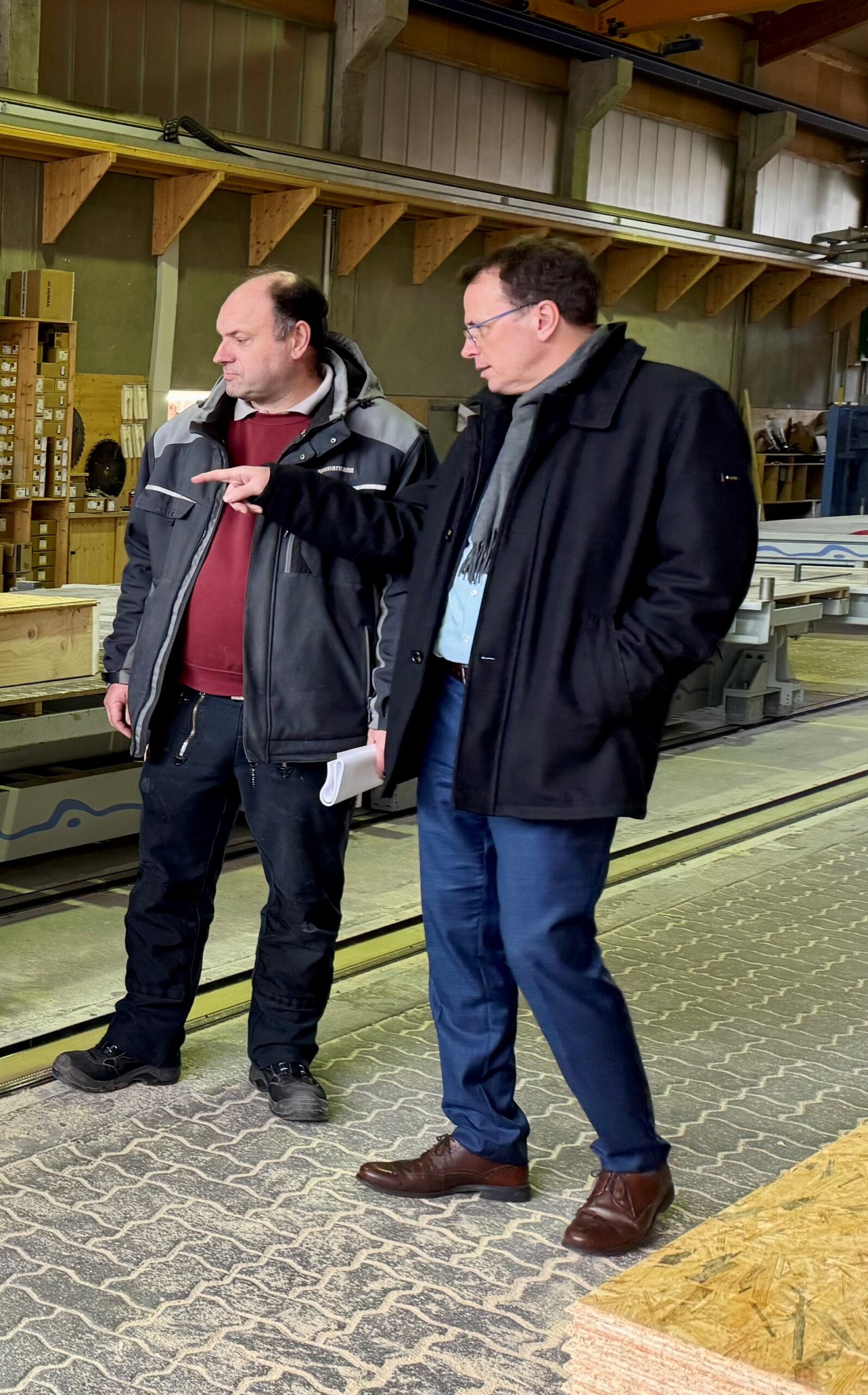 Der Landtagsabgeordnete und CDU-Landtagskandidat Volker Schebesta hat die Roland Zimmermann GmbH in Bad Peterstal-Griesbach besucht. Bei einem Betriebsrundgang informierte er sich über die Arbeitsabläufe und die digitale Produktionstechnik des regionalen Holzbauunternehmens. Dabei standen die Themen Bürokratieabbau, wirtschaftliche Rahmenbedingungen und Digitalisierung im Mittelpunkt.